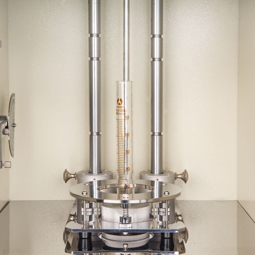 PT-01粉体流动性测试仪提供了美国ASTM D6393-99标准(卡尔指数)中规定的测定方法,即冲击锤质量110克,冲击距离150mm.